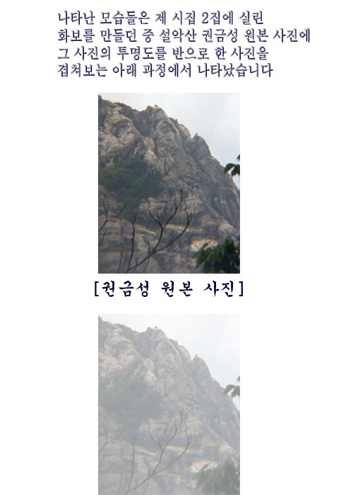 세 번째는 제가 설악산에서 직접 찍은 사진으로 2집 화보 작업을 하던 중