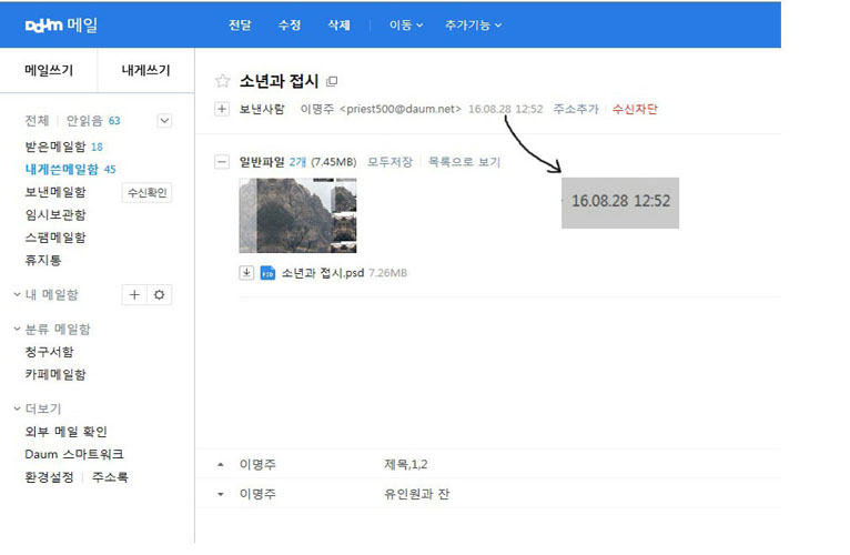 나타난 날짜별로 제 메일함에 저장해 두었기에 근거는 더욱 확실합니다