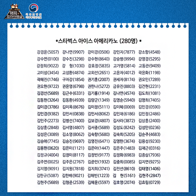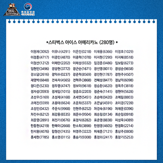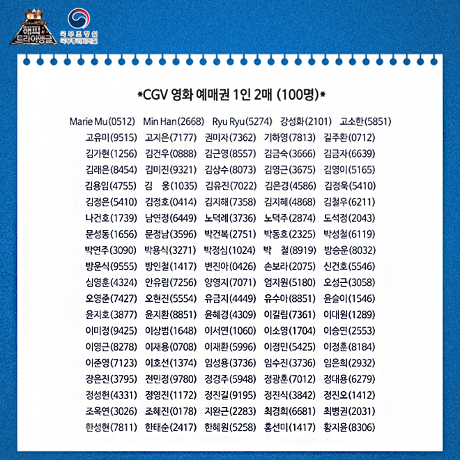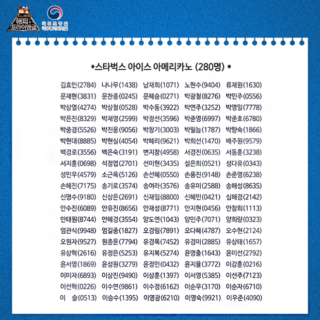 모두가 기다리고 기다리던 당첨자 분들 명단을 공개하겠습니다.