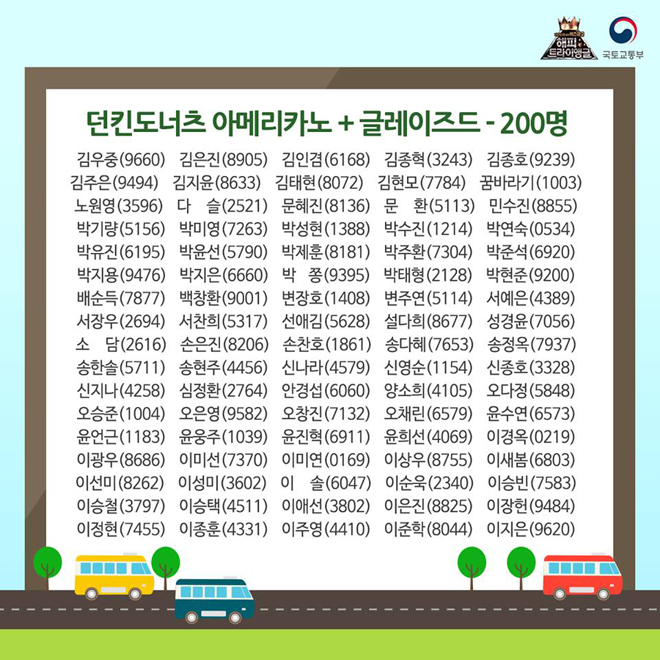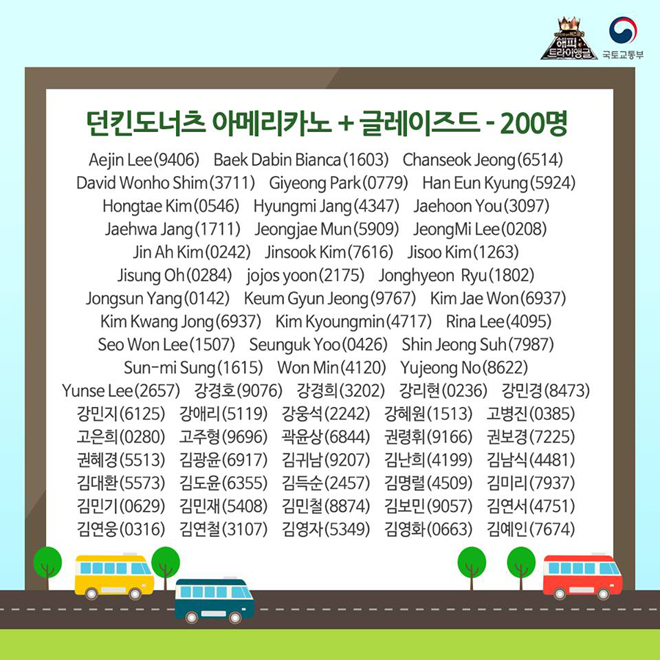모두가 기다리고 기다리던 당첨자 분들 명단을 공개하겠습니다.