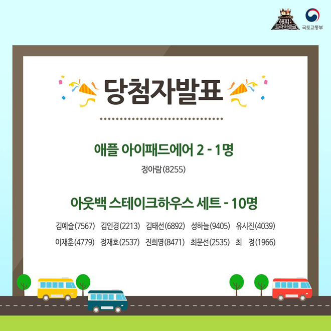 국토교통부 퀴즈왕 선발전 당첨자 발표]