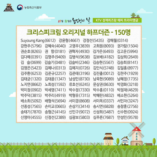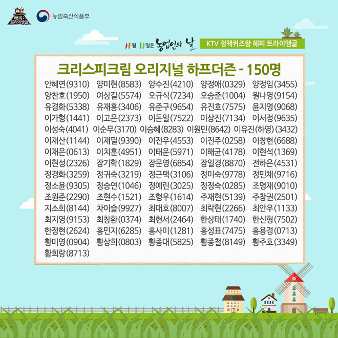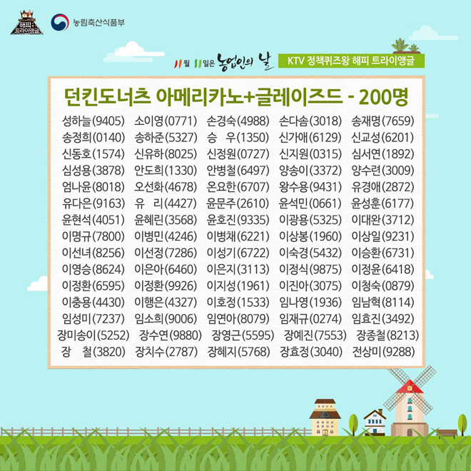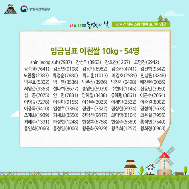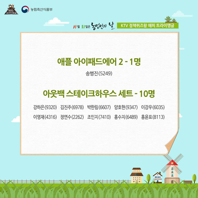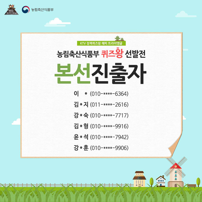 농림축산식품부 퀴즈왕 선발전 당첨자 발표]